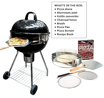 - Can Cook A Pizza in 3 to 5 Minutes; Includes Stainless Steel Kettle Converter, 15-inch Round Cordierite Pizza Stone, And Charcoal Fence